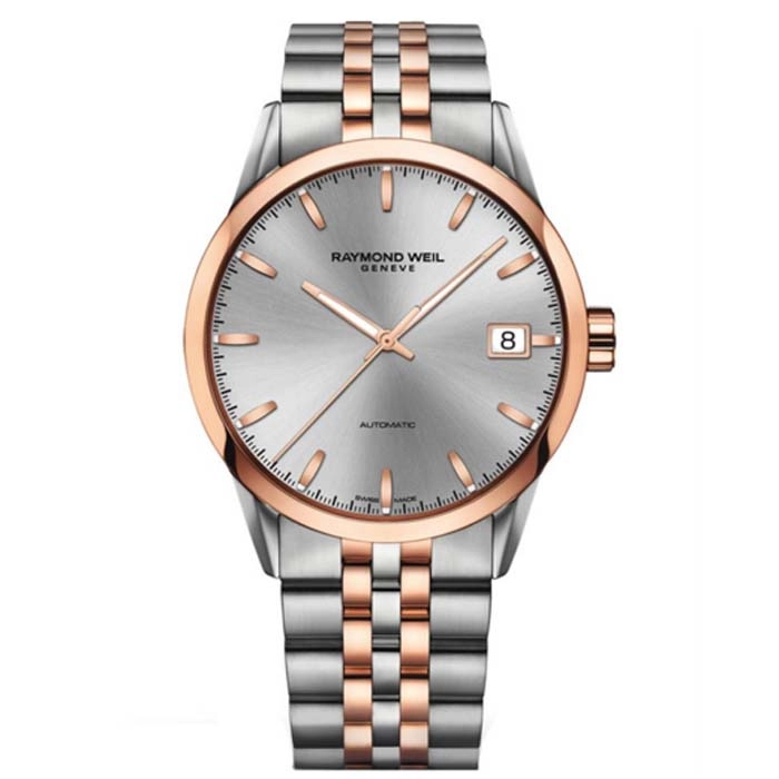 Του οίκου Raymond Weil Geneve ένα ρολόι από ανοξείδωτο ατσάλι και ροζ ανοξείδωτο ατσάλι με ασημί καντράν με αυτόματο μηχανισμό