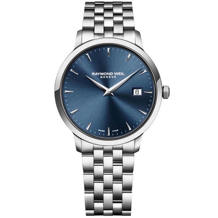 Του οίκου Raymond Weil Geneve ένα ρολόι από ανοξείδωτο ατσάλι με μπλε καντράν