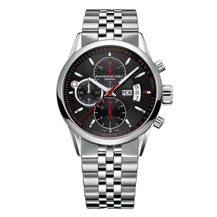 Του οίκου Raymond Weil Geneve ένα ρολόι από ανοξείδωτο ατσάλι και μαύρο καντράν με αυτόματο μηχανισμό