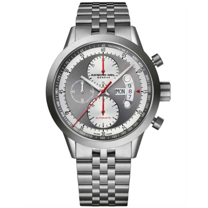 Του οίκου Raymond Weil Geneve ένα ρολόι από τιτάνιο και με ασημί καντράν
