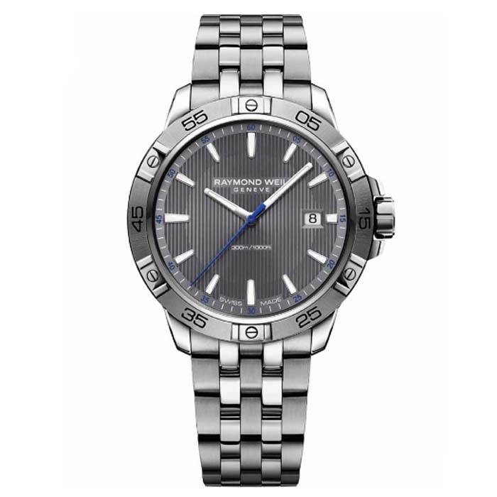 Του οίκου Raymond Weil Geneve ένα ρολόι από ανοξείδωτο ατσάλι και με γκρι καντράν