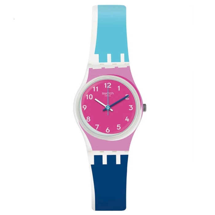 Η σχεδιαστική φιλοσοφία της SWATCH, να παρουσιάζει διαρκώς νέα σχέδια και συνδυασμούς χρωμάτων δημιουργώντας νέες τάσεις στη μόδα, φαίνεται ξεκάθαρα σε αυτό το όμορφο ρολόι.