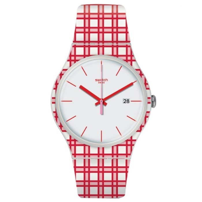 Η σχεδιαστική φιλοσοφία της SWATCH, να παρουσιάζει διαρκώς νέα σχέδια και συνδυασμούς χρωμάτων δημιουργώντας νέες τάσεις στη μόδα, φαίνεται ξεκάθαρα σε αυτό το όμορφο ρολόι.