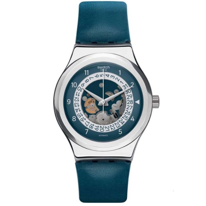 ΡΟΛΟΙ SWATCH YIS417 SWATCH Sistem Through Automatic Blue Leather Strap