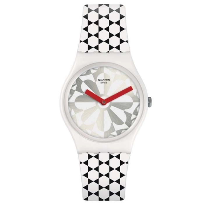 Η σχεδιαστική φιλοσοφία της SWATCH, να παρουσιάζει διαρκώς νέα σχέδια και συνδυασμούς χρωμάτων δημιουργώντας νέες τάσεις στη μόδα, φαίνεται ξεκάθαρα σε αυτό το όμορφο ρολόι.