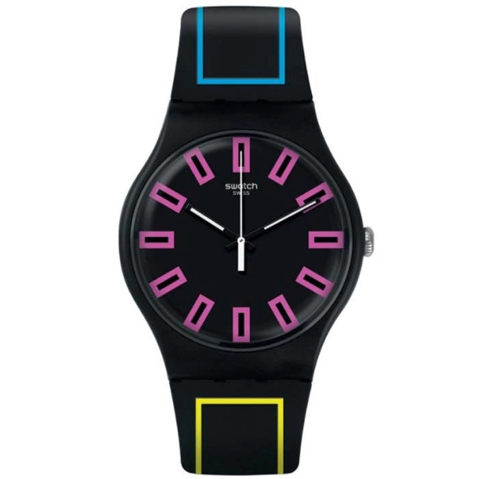 Η σχεδιαστική φιλοσοφία της SWATCH, να παρουσιάζει διαρκώς νέα σχέδια και συνδυασμούς χρωμάτων δημιουργώντας νέες τάσεις στη μόδα, φαίνεται ξεκάθαρα σε αυτό το όμορφο ρολόι.