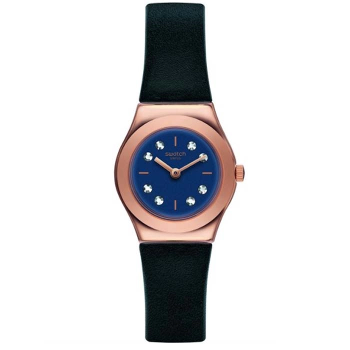 Η σχεδιαστική φιλοσοφία της SWATCH, να παρουσιάζει διαρκώς νέα σχέδια και συνδυασμούς χρωμάτων δημιουργώντας νέες τάσεις στη μόδα, φαίνεται ξεκάθαρα σε αυτό το όμορφο ρολόι.