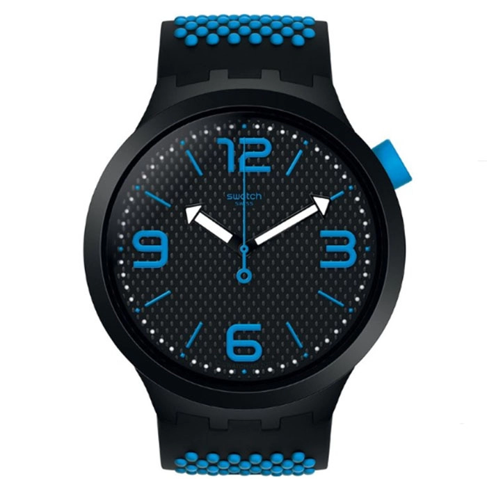 Ένα ιδιαίτερο ρολόι από την Big Bold Collection της SWATCH με πολύ άνετο λουράκι σιλικόνης και εξαιρετικά ευδιάκριτους δείκτες, οι οποίοι φέρουν ειδική επίστρωση SuperLuminova και φωσφορίζουν. Ένα μοντέρνο σχέδιο που φοριέται εξίσου άνετα από τα δύο φύλα.