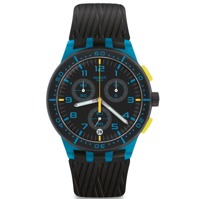 ΡΟΛΟΙ SWATCH SUSS402 SWATCH Blue Tire Black Rubber Chronograph