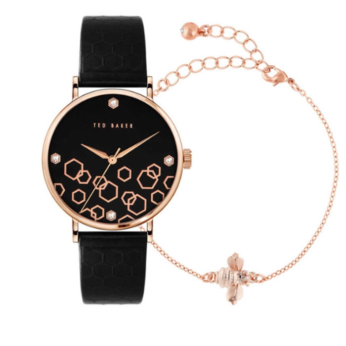 ΡΟΛΟΙ TED BAKER BKG028400 TED BAKER Phylipa Beehive Black Leather Strap Gift Set