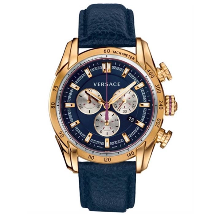 Aπό τον οίκο Versace ένα ρολόι της σειράς V-Ray από ροζ χρυσό ανοξείδωτο ατσάλι και μπλε δέρμα