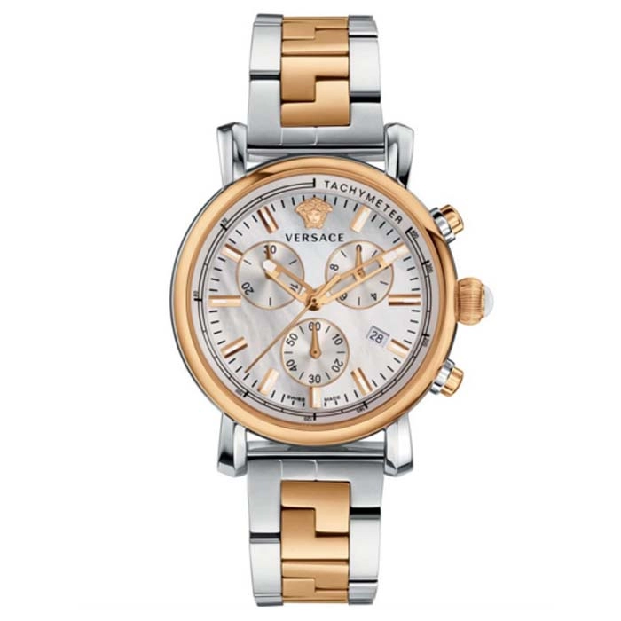 Aπό τον οίκο Versace ένα ρολόι της σειράς Day Glam από ροζ χρυσό ανοξείδωτο ατσάλι και φίλντισι