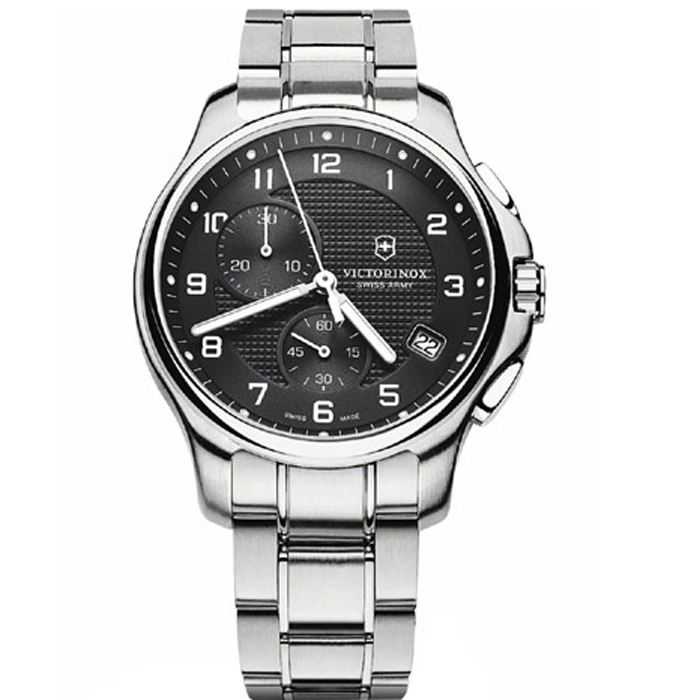 Από τον οίκο VICTORINOX της σειράς Officer's, ένας μοντέρνος χρονογράφος από ανοξείδωτο ατσάλι και μαύρο καντράν. Επιπλέον δώρο ένας Ελβετικός σουγιάς σε ειδική πολυτελή συσκευασία.